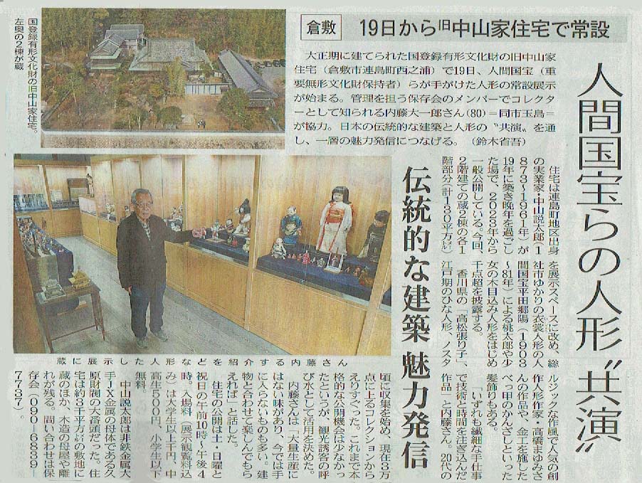 ●山陽新聞2023年3月8日朝刊に、旧中山家住宅の「修復完了、12日に特別公開」が紹介されました(2023/3/8)