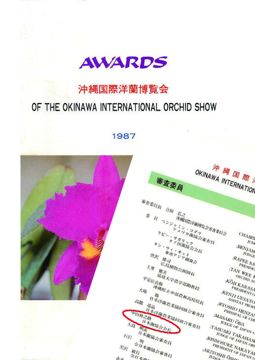 ・日本で開催されているラン展で最も永い歴史をもつ「沖縄国際洋ラン博覧会(1987~)」の開催に関わっています、1987~1989は審査員、1990~1991は実行委員を務めています(↓)。