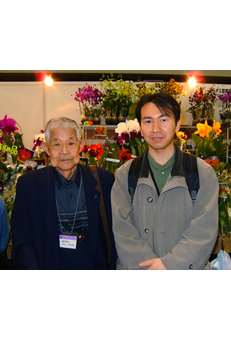 ・コンベックス岡山で開催された蘭おかやま(1991~2006)の企画に携わっています、1996年の第6回には、実行委員長としてその手腕を振るわせています(↓)。蘭おかやま2006の会場でのカトログ!!管理人・運営者の西口進一氏との2ショットです(↓)、西口氏には、このホームページの制作にご協力いただきました。