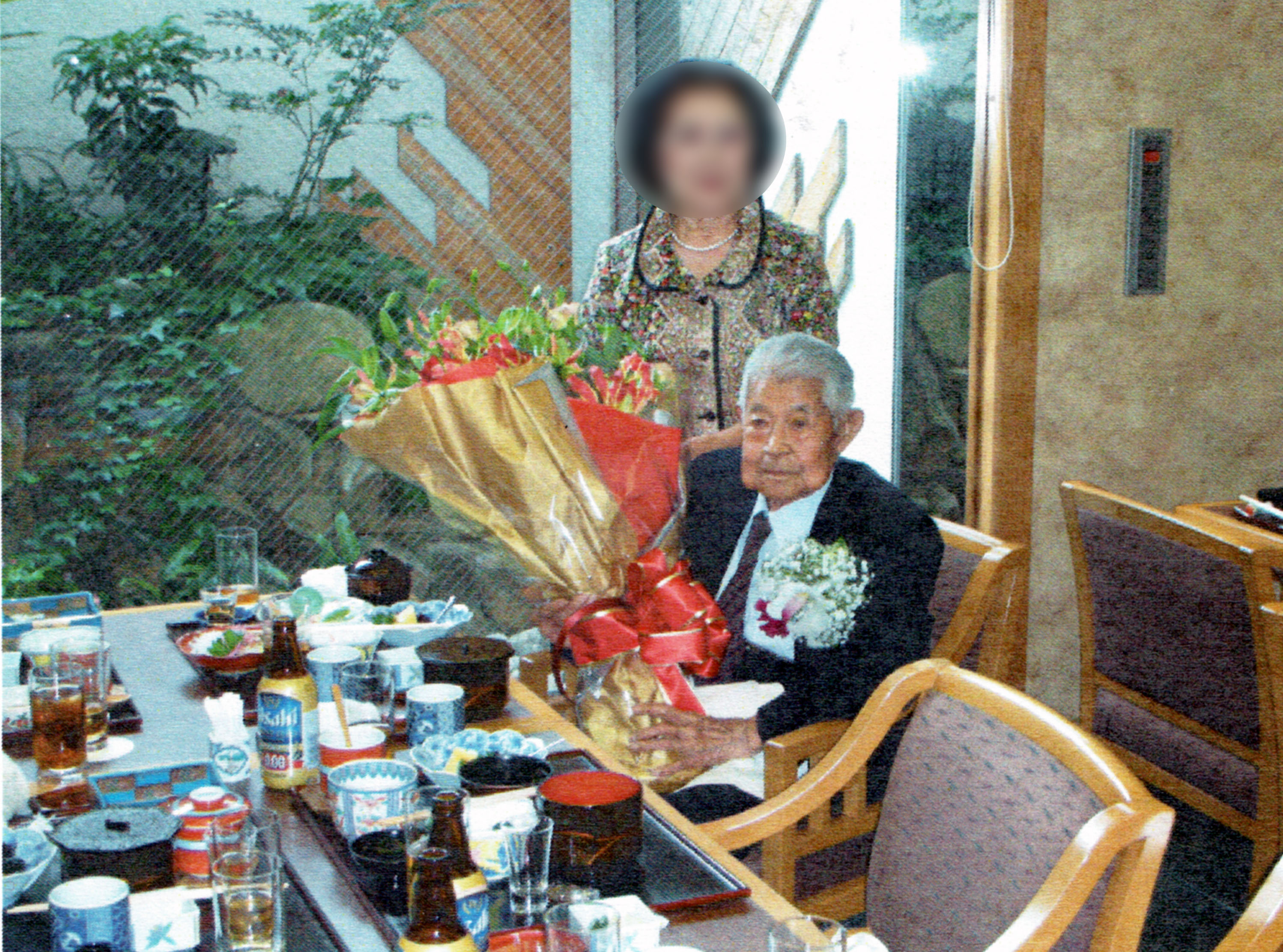 ・2009年、倉敷国際ホテルで白寿の祝いが開かれました、多くの知人友人がお祝いに駆けつけてくれました(↑)。