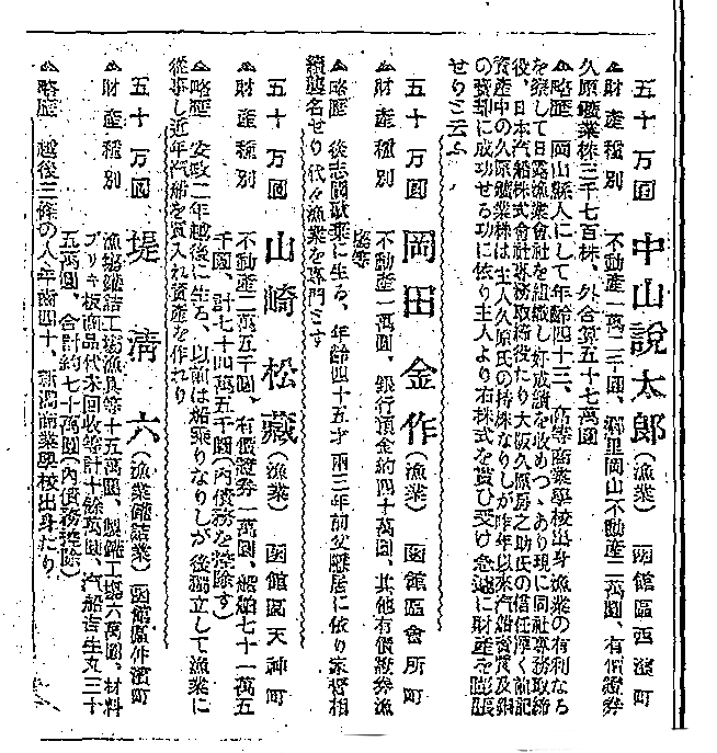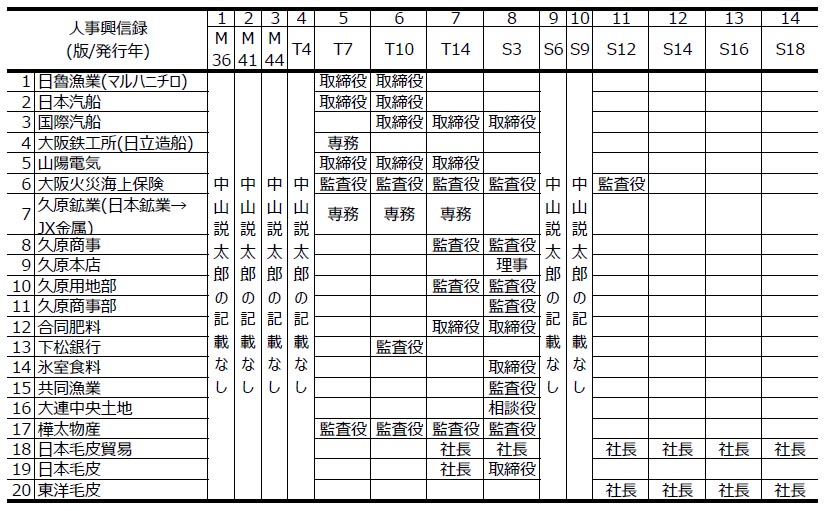 | 1914(大正3) | 41 | 日魯漁業(後のマルハニチロ)専務取締役 |